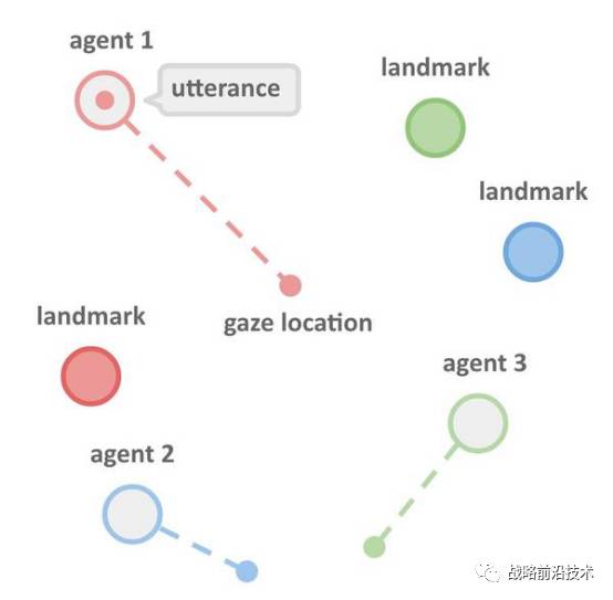 机器人会谈论如何完成任务,他们必须进行位移,且需要为了成功完成任务进行对线号智能体在观察中心点的时候正在说话。